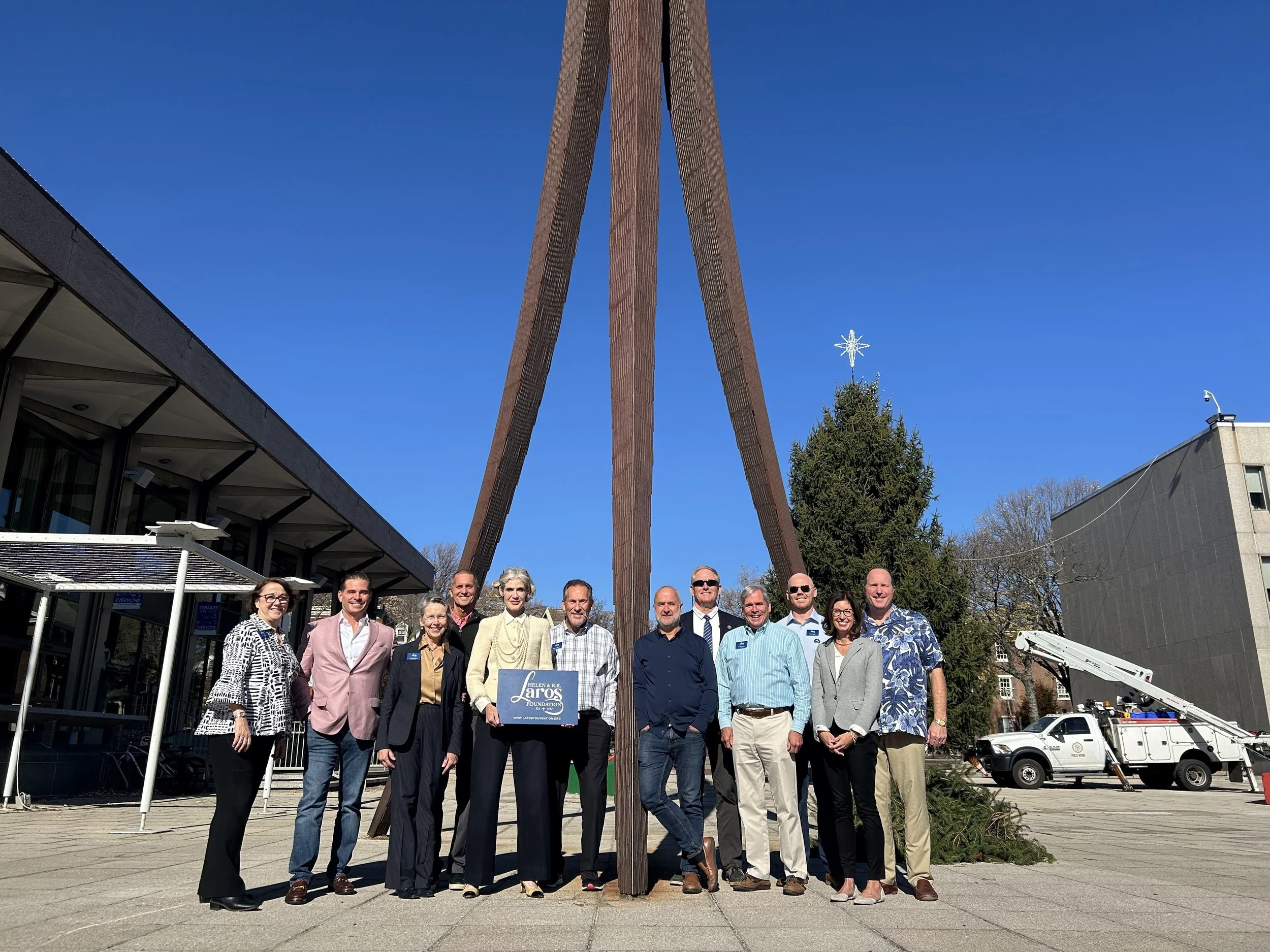 The Helen & R.K. Laros Foundation Trustees December 2, 2022 in front of the historic 1919 Laros Silk Mill, Broad Street, Bethlehem Pennsylvania